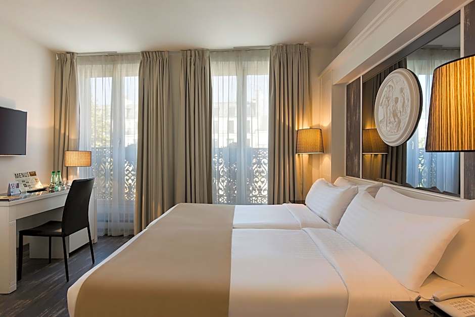 This twin room has a flat-screen smart TV, a mini-bar and air conditioning. It also has free toiletries (on request).